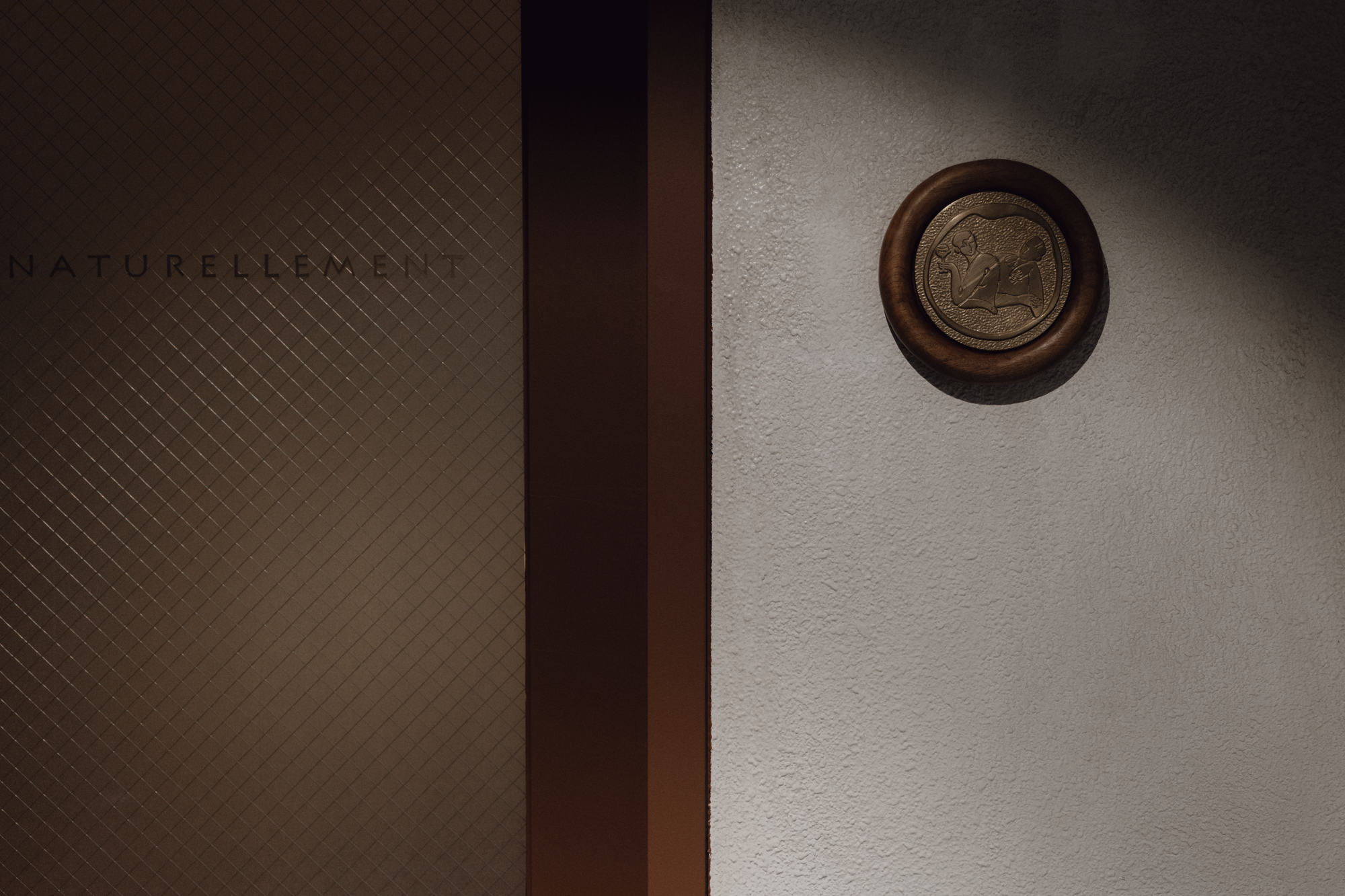 입구 벽에 설치된 오브제는 현재의 공간을 상징하는